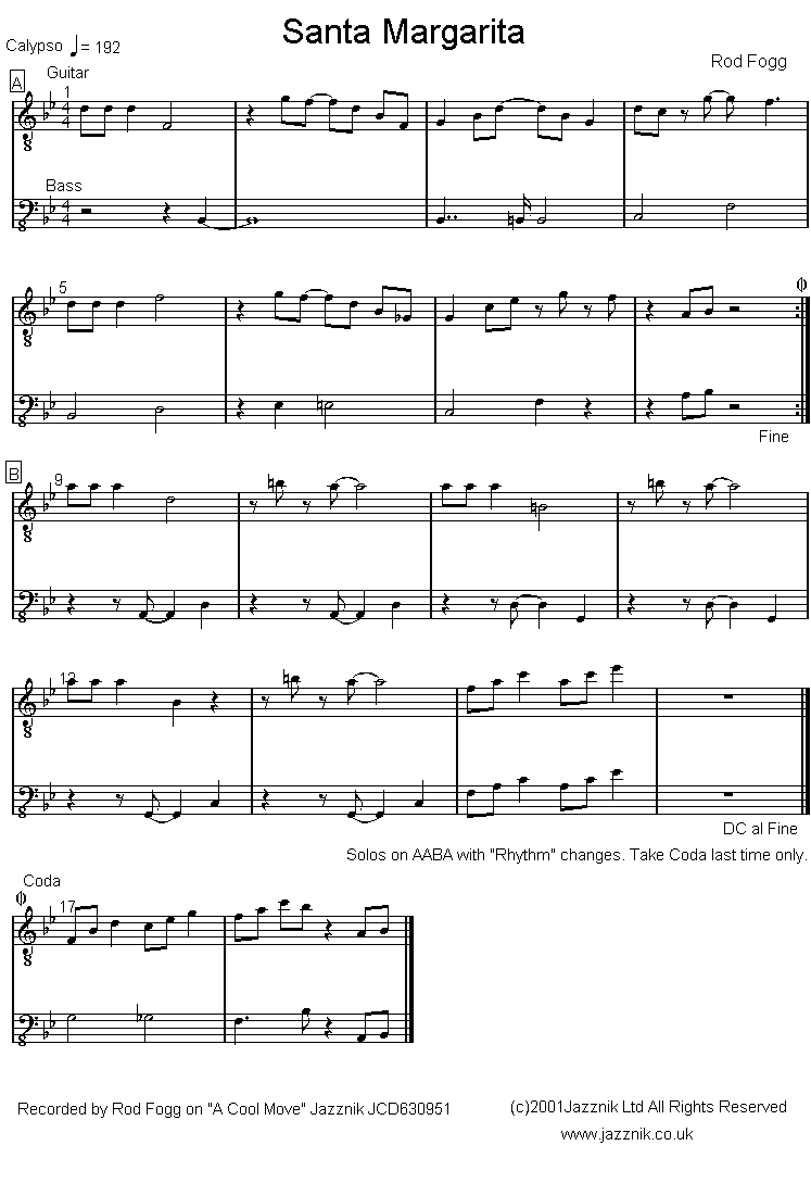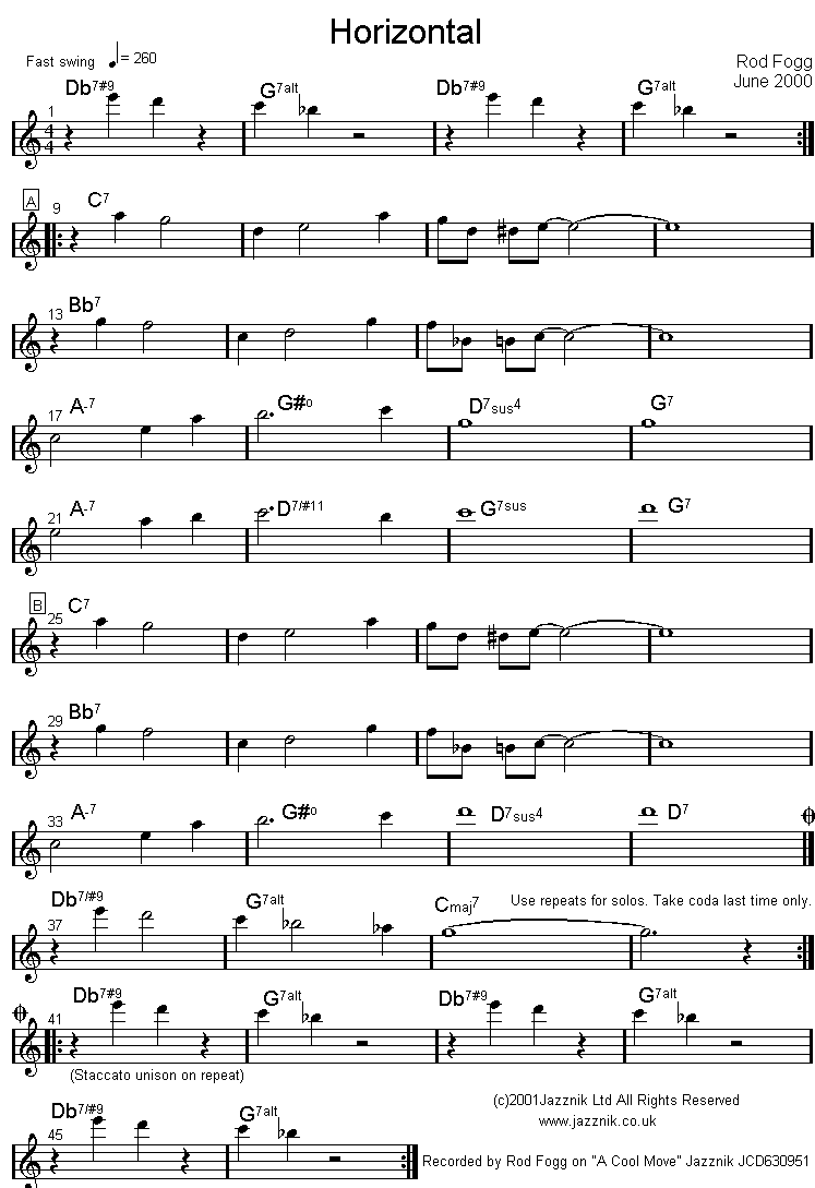 This fast jazz tune has a 28 bar theme which is also used for soloing.