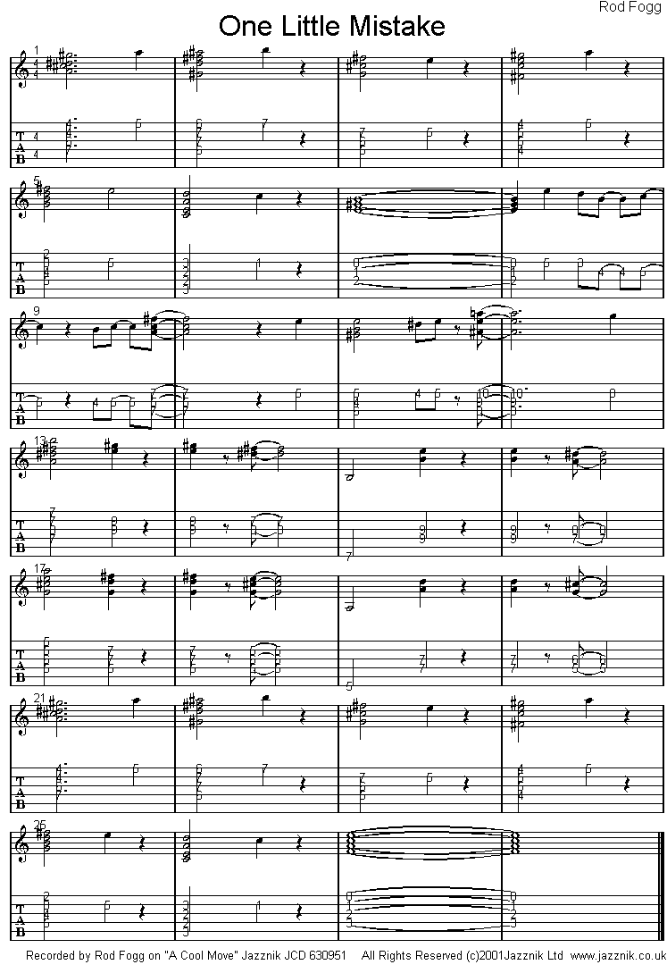 The piece is played on the guitar using a mixture of 4-note chord voicings